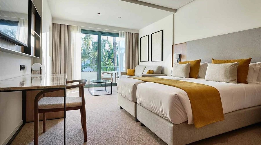 Bij Wellness Calderona verblijf je in comfortabele, moderne kamers en suites die rust en stijl ademen. Elk detail is ontworpen om je verblijf onvergetelijk te maken — van de lichte, ruime suites tot de ontspannende lounge-zones. Na een dag op de fiets of in de natuur vind je hier jouw oase van rust.